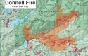 Update at 10:05am: Last night crews battling the Donnell Fire continued structure protection along Highway 108 including backfiring operations east of Douglas tract and around Baker Station. A team also worked around the famous Bennett Juniper, building containment lines and added protection. High winds projected today create the potential for rapid fire growth. Yesterday air support dropped 42,000 gallons of retardant. Fix wing aircraft and helicopter support will continue today.