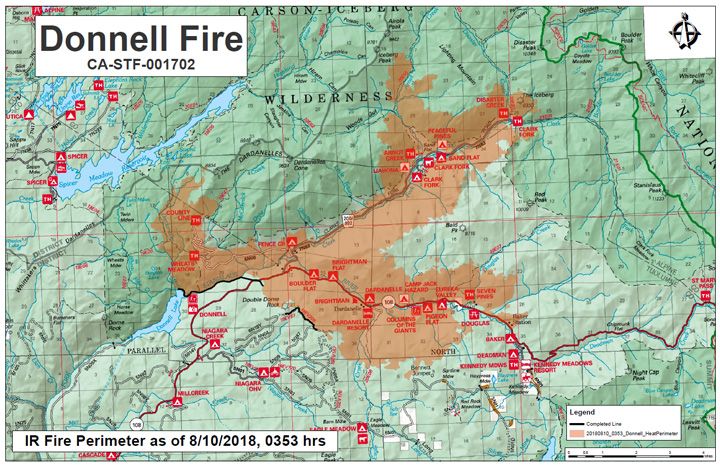 This morning the US Forest Service issued an order closing the Carson-Iceberg Wilderness and Spicer Lake. The fire is considered 5-percent contained. We expect to have more information about the current strategies and the fire’s direction following the morning briefing at base camp.