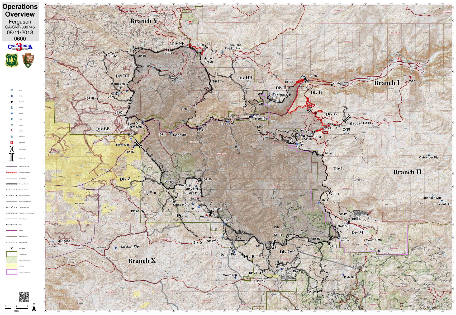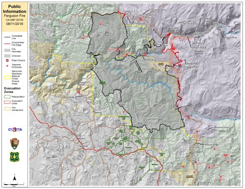 Original post at 8:30 a.m.: Mariposa County, CA – Minimal fire activity kept the Ferguson Fire in check with the acreage holding at 95,444 acres and the containment remains at 82-percent.